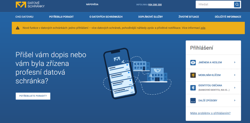• přihlášení do datové schránky pomocí identity občana – jde o elektronické ověření, které se propojí s datovou schránkou