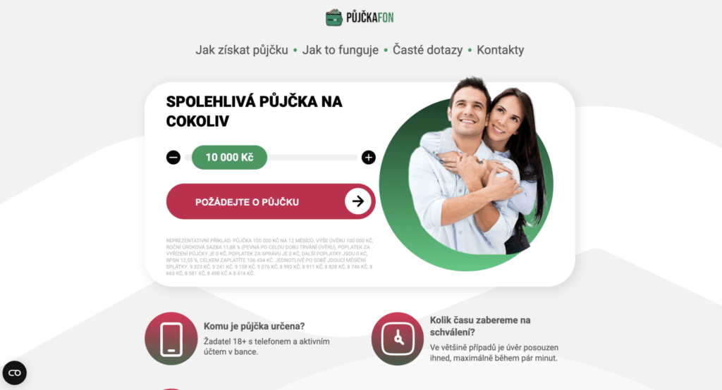 Reprezentativní příklad Půjčkafon.cz – úvěr 100 000 Kč