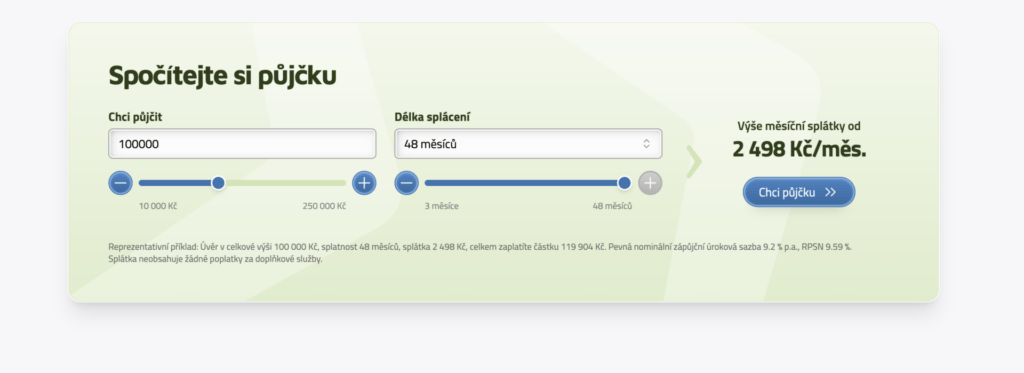 Digitální proces umožňuje čerpat od 10 000 Kč do 250 000 Kč se splatností v rozmezí 3 až 48 měsíců. Tento produkt je vhodný pro klienty, kteří potřebují stabilitu delšího splátkového kalendáře.