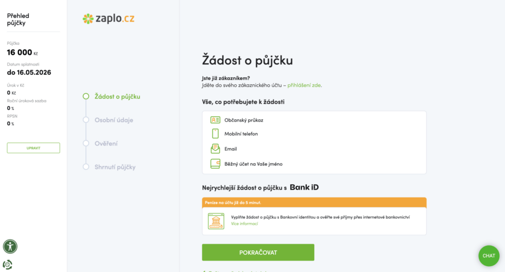| Zaplo | 30 000 Kč | 12 měsíců | První půjčka zcela zdarma |