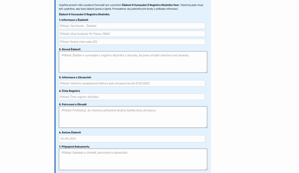 Přesto má vzor žádosti o vymazání z registru dlužníků své místo při řešení nepřesností, záměny osoby nebo chybného data ukončení závazku.